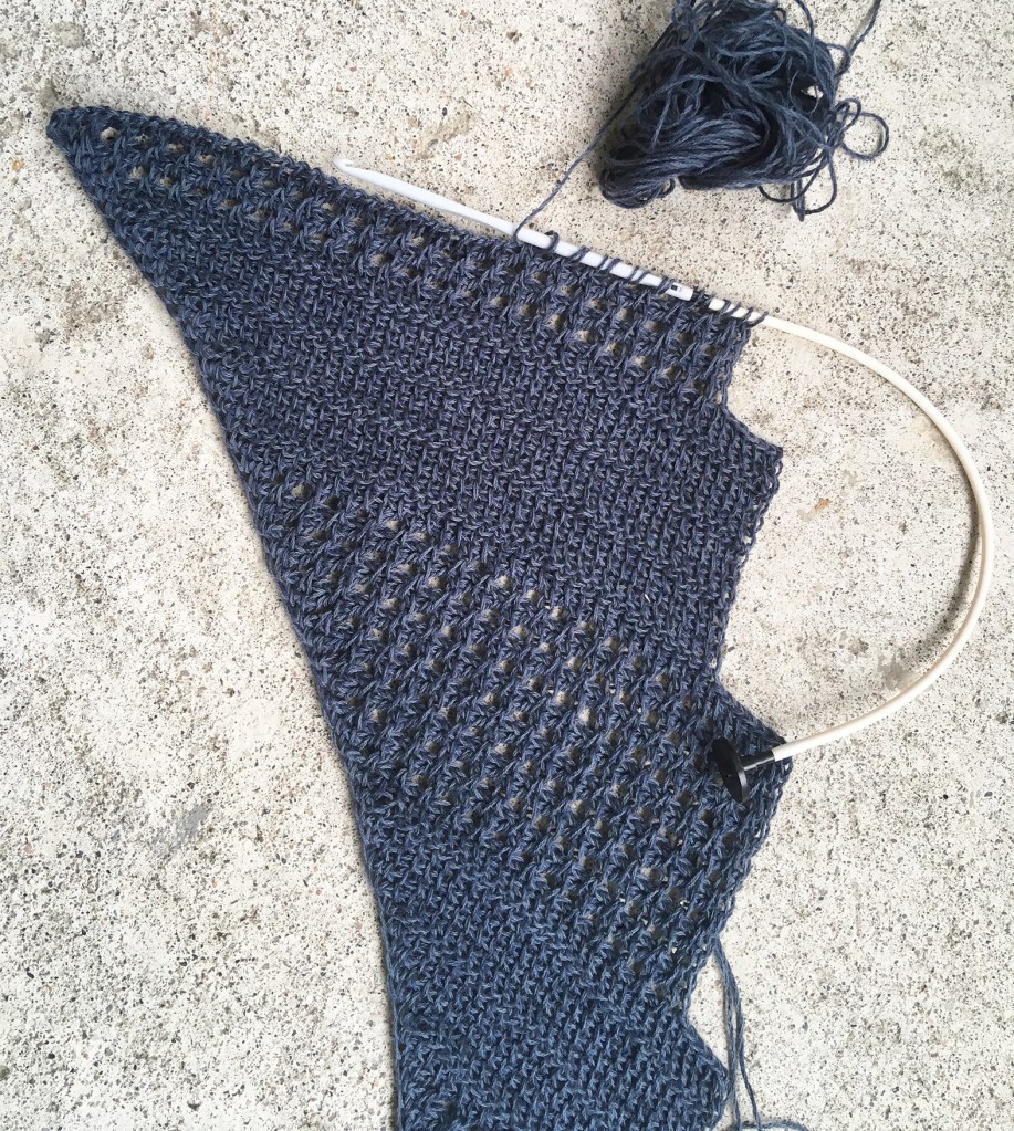 Lin er tingen om sommeren! Både å jobbe med og drapere rundt halsen. Hakketeknikken gir et resultat som holder fasongen nesten som et vevet stoff, og egner seg spesielt godt til sjal, skjerf og topper i linblanding.