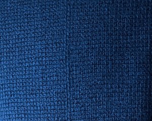 Garnet jeg har brukt er Sølje pelsullgarn fra Hillesvåg i farge marineblå. Veldig behagelig å jobbe med i hakke-prosjekter. Toppen av skuldrene, sadlene, er heklet i rib-mønster med vridde hakkemasker. Man ser det nesten ikke på bildene, men det er samme mønster som du ser på nederste del av bolen ved splitten. Stripene på skuldrene fortsetter nedover ermene.