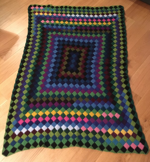 I et tidligere innlegg fortalte jeg om et fargerikt slumreteppe jeg hakket i restegarn. Pleddet er for lengst ferdig, og jeg har fått mye positive tilbakemeldinger på det. Og det er i bruk hver dag! Jeg har omsider skrevet en detaljert oppskrift på hvordan man lager slike pledd, den finner dere her!