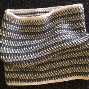 Hvis du som meg har en haug ensomme nøster i forskjellige farger liggende, så er dette en veldig morsom måte å bli kvitt noen på! Halsen over og pulsvarmerene under…